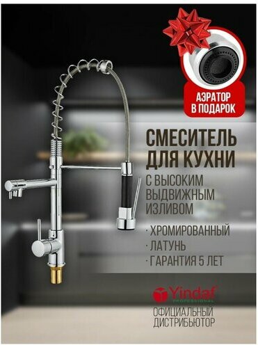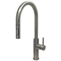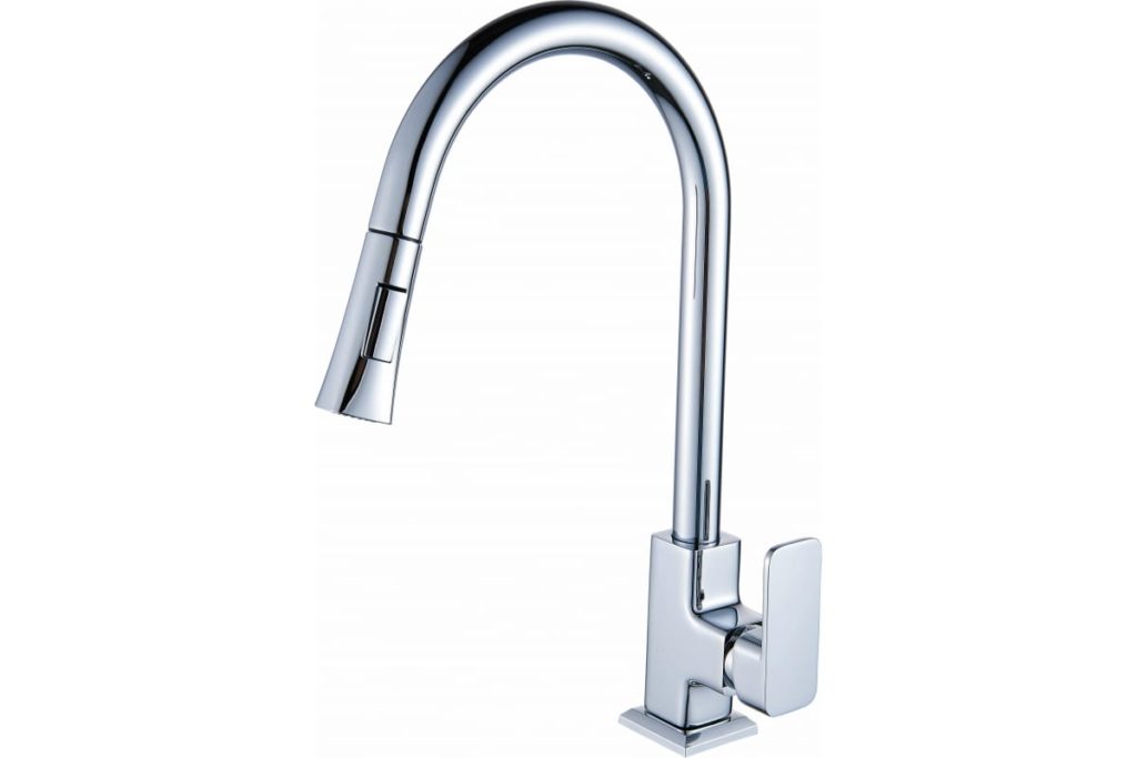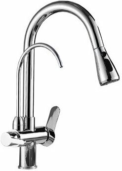 L'entreprise propose une solution moderne pour la cuisine de différents intérieurs. Le design élégant s'intégrera succinctement dans n'importe quelle palette de couleurs. Type de bec : rétractable, pivotant. Le débit d'eau maximal est de 6 l/min. Angle de rotation de la poignée bas/haut : 160 degrés. Longueur bec : 20 cm, longueur anse : 11 cm Hauteur : 13 cm Poids : 1,5 kg. Le kit comprend un tuyau flexible de 1/2″ (300-400 mm). Prix moyen : 1550 roubles.