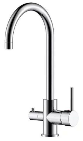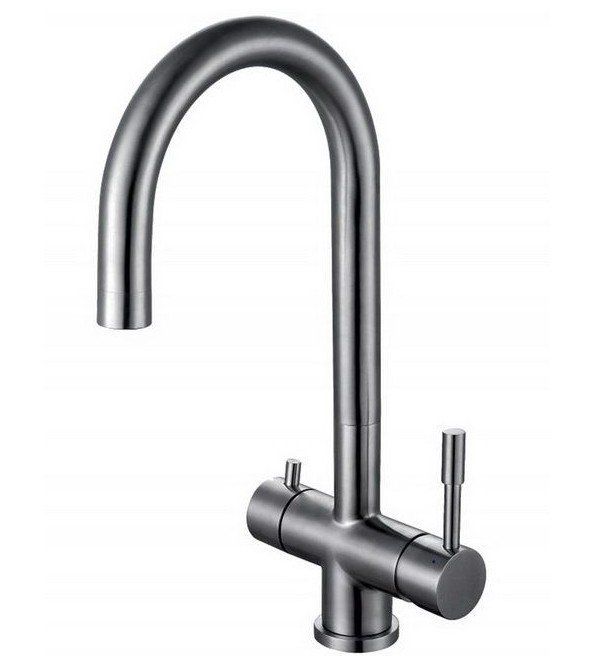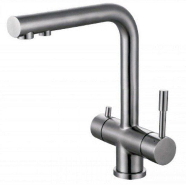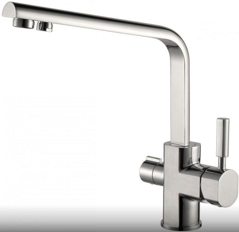 Mélangeur avec col de cygne en forme de L avec possibilité de connecter un filtre à boire. En termes de fonctionnalité, il est similaire au modèle précédent. La principale différence est la présence d'un bec séparé pour l'eau filtrée.