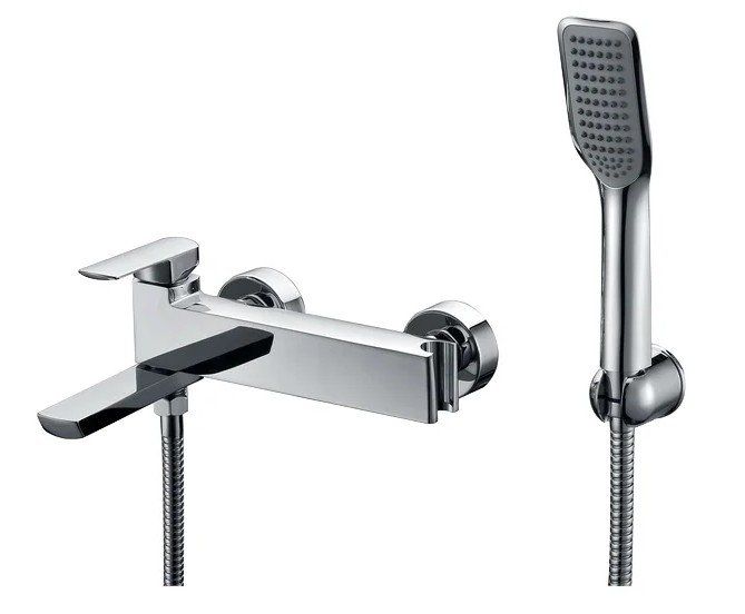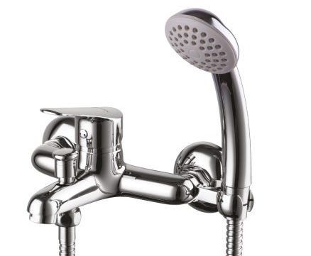 Robinet de bain à levier unique avec douche de forme traditionnelle. Le changement de mode bain-douche est automatique, c'est-à-dire après avoir utilisé la douche et éteint l'eau, il passe au bec lui-même. De plus, un clapet anti-retour est intégré au taon de la douche, ce qui empêche le retour d'eau.