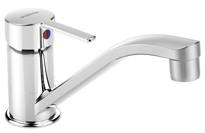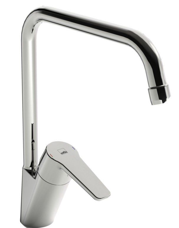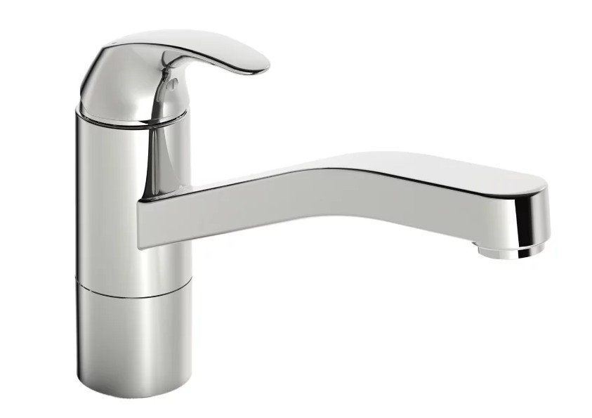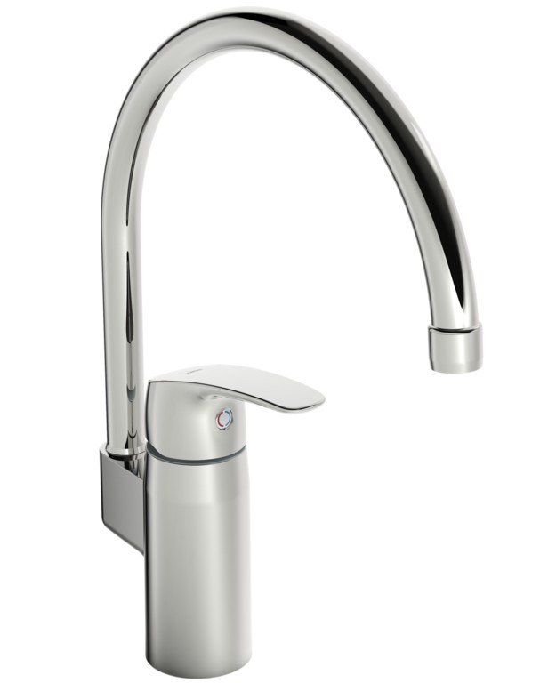 Mitigeur monocommande très facile à utiliser et à installer. Le grand angle de pivotement permet à ce modèle d'être utilisé dans des éviers à double cuve. L'aérateur en plastique est équipé d'un grillage pour réduire le bruit. La forme profilée du robinet le rend facile à entretenir et à nettoyer sans détails inutiles.