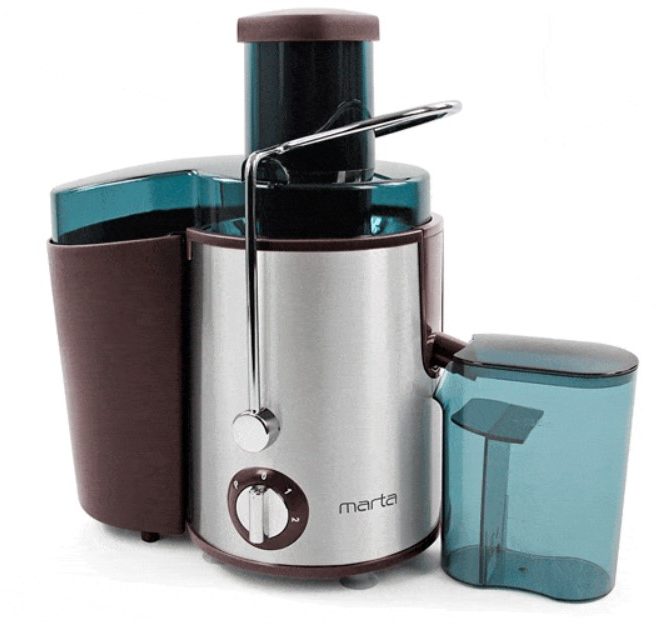 L'appareil du segment de prix budgétaire est disponible pour beaucoup. Il a une faible consommation d'énergie - 200 watts. Le poids est de 3,5 kg. Équipé d'un système anti-chute et d'une fonction d'éjection automatique de la pulpe. Les inconvénients incluent une rainure étroite pour le gâteau, dans laquelle il peut se coincer. Il est nécessaire de laver l'appareil immédiatement après l'essorage.
