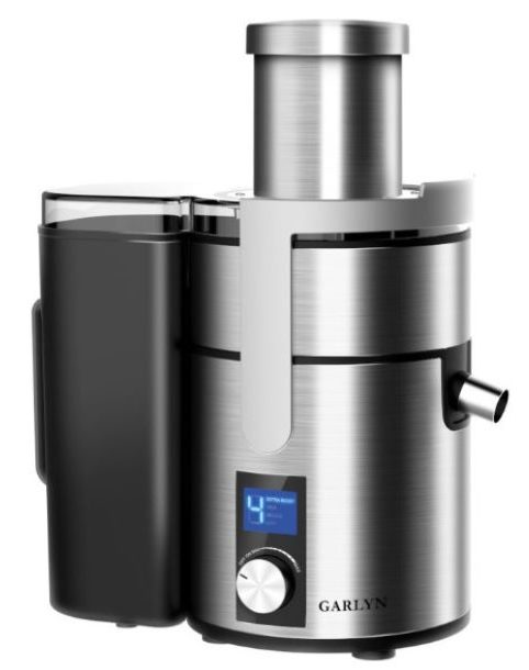 L'un des meilleurs modèles centrifuges combine qualité de fabrication et grande puissance. Le diamètre du col est de 85 mm, ce qui vous permet de charger des tomates entières. Peut être utilisé pour transformer d'autres légumes et fruits. Il dispose de quatre modes de vitesse, le maximum est de 18 000 tr/min, ce qui vous permet d'obtenir une boisson presque instantanément.