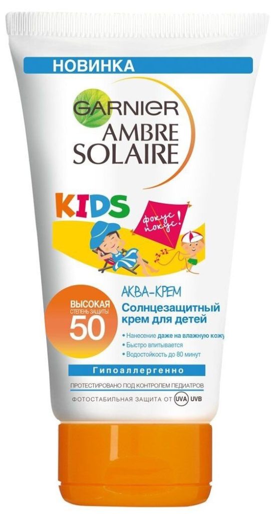Le produit cosmétique d'un fabricant bien connu de produits cosmétiques convient à la peau sensible des enfants, protège efficacement contre le rayonnement solaire, ne dessèche pas la peau et ne provoque pas d'allergies.