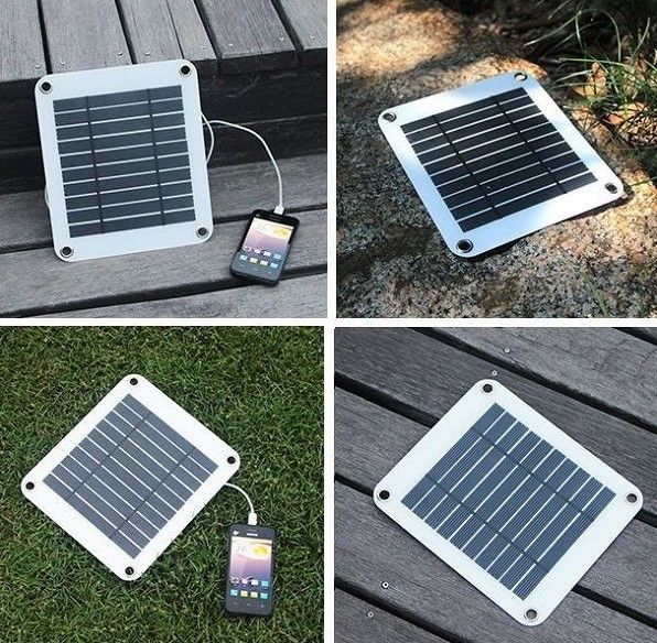 Ce modèle est un chargeur portable. Ce panneau solaire, selon le fabricant, a des performances élevées et un rendement de 18,5 %. La sortie USB 5 vous permet de charger divers téléphones, vidéo et appareil photo, iPhone, IPOD, etc.
