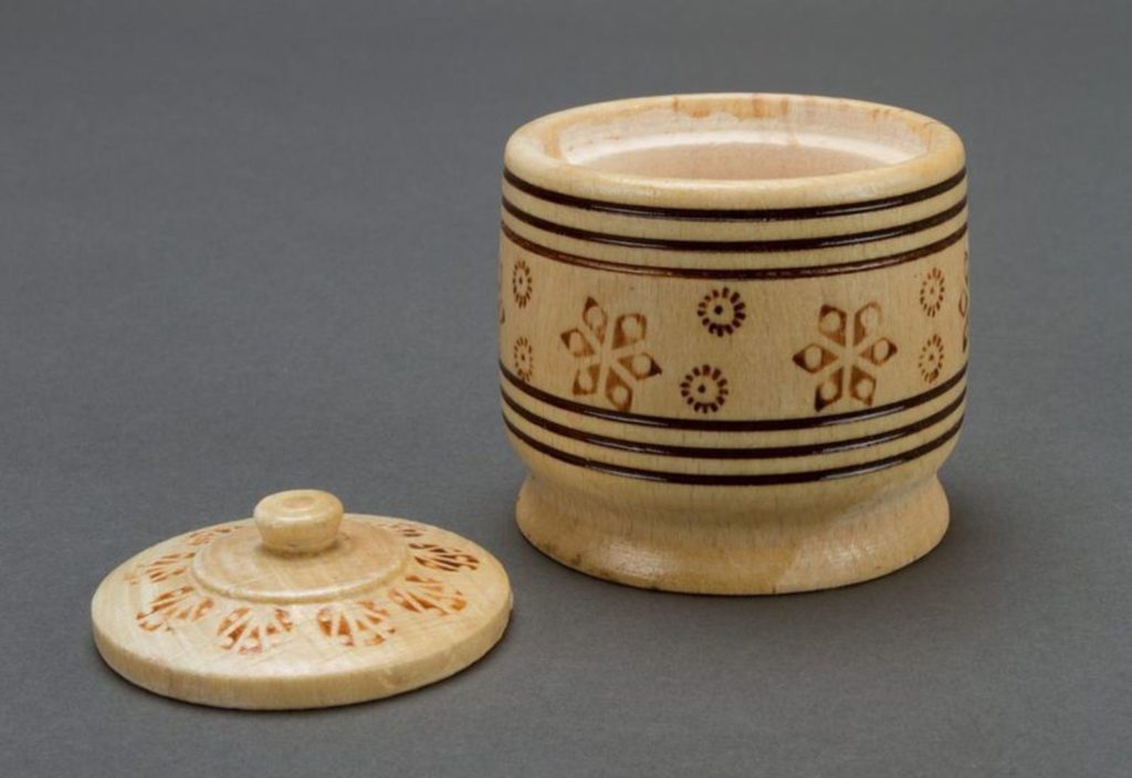 Le modèle en bois classique sera le complément parfait à n'importe quel festin. L'article est en bois naturel, il n'affecte donc pas le goût de l'épice et ne perd pas son apparence pendant une longue période. La capacité du récipient est de 50 ml. Il faut faire attention au couvercle pratique, qui se ferme hermétiquement et protège le sel de l'humidité.