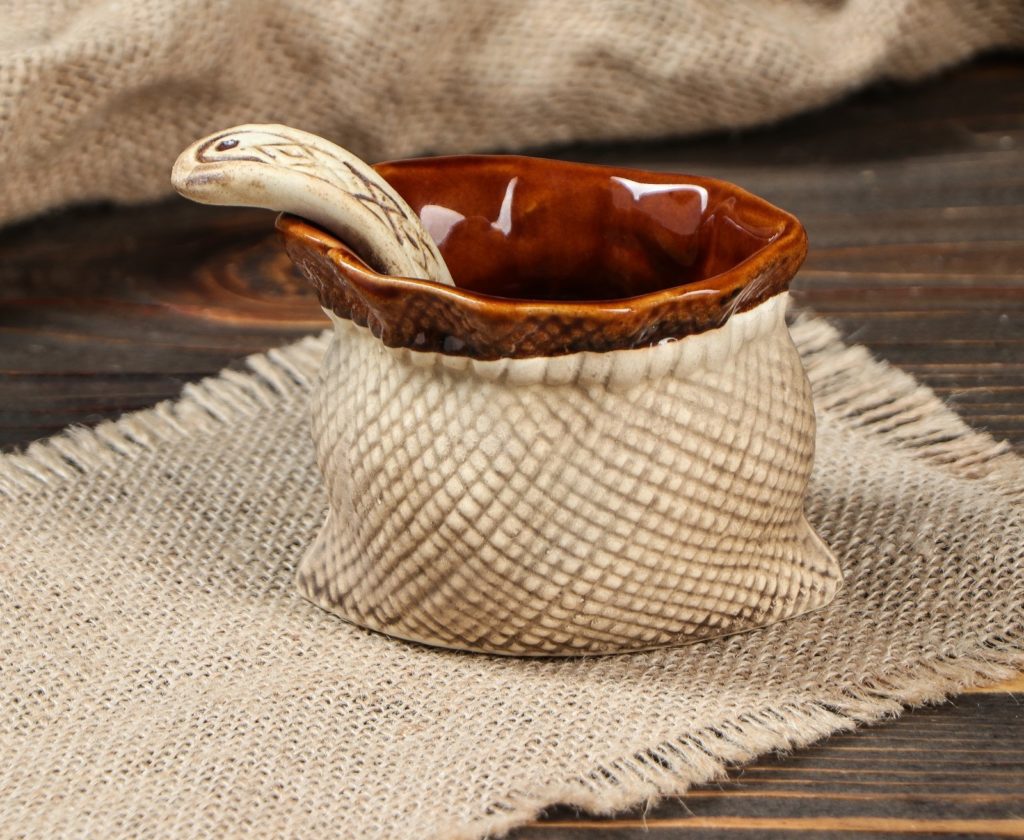 Le produit fait à la main est très populaire parmi les utilisateurs. Le produit deviendra un assistant indispensable dans n'importe quelle cuisine. L'ensemble est livré avec une cuillère spéciale pour une utilisation pratique. Le modèle est fabriqué en céramique sûre, ce qui n'affecte pas le goût et la durée de conservation des épices.