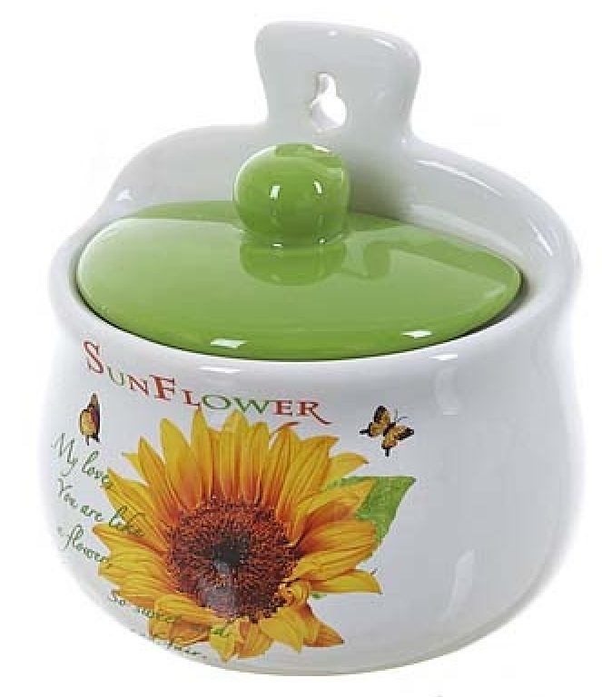 Le modèle suspendu ne prend pas beaucoup de place. L'article est fabriqué en céramique durable et a une couleur vive.La couverture pratique est densément fermée et ne laisse pas passer l'humidité. La capacité du produit est de 300 ml et la hauteur de 12,5 cm vous permet d'utiliser confortablement les épices dans le processus de cuisson.