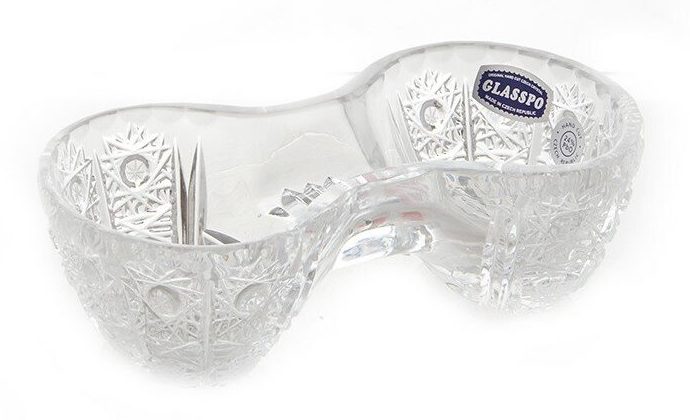 Le modèle est en cristal fin, il ne passera donc pas inaperçu. Le double bol vous permet de placer à la fois le poivre et le sel. Le cristal ne s'assombrit pas et avec des soins appropriés durera longtemps. Les bols sont profonds, donc le sel ne se réveille pas et ne forme pas de grumeaux.