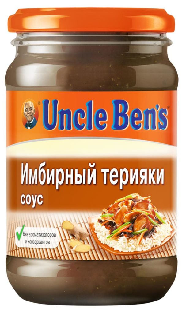 La sauce est conditionnée dans un bocal en verre avec un bouchon à vis. Tout ce que vous devez savoir sur un produit se trouve sur l'étiquette. Lorsque vous ouvrez le couvercle, vous ressentez immédiatement l'arôme, semblable à la sauce Teriyaki de l'ensemble de poulet KFC. La consistance et la teinte sont également très similaires.