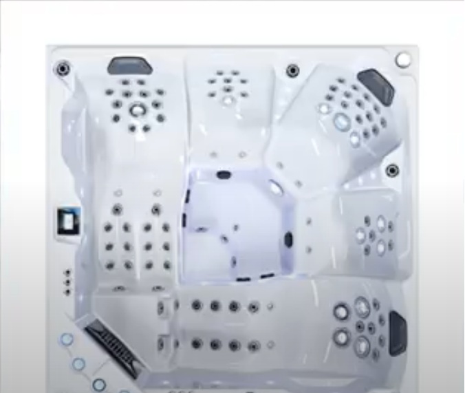 La marque américaine est représentée par un modèle avec cascades, éclairage et massage à air. La conception pèse 250 kg et est conçue pour 1420 litres.