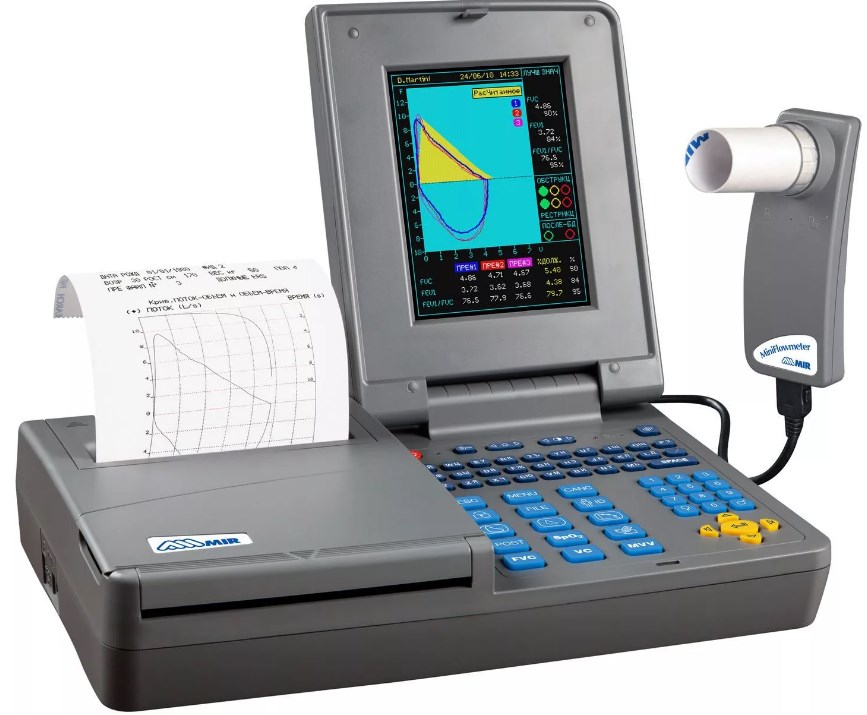 Un spiromètre très compact et facile à utiliser de la société italienne MIR. Connecté à un PC via un port USB, un petit appareil se transforme en véritable laboratoire spiro. Il mesure non seulement les principaux paramètres de la fonction respiratoire, mais analyse également, interprète les données reçues, les enregistre automatiquement dans une base de données, extrapole l'âge des poumons, etc. Le puissant logiciel WinspiroPRO intègre l'appareil au réseau hospitalier. Le programme a une interface conviviale et intuitive. L'appareil se caractérise par une grande précision de mesure grâce au capteur de température intégré, qui corrige les données reçues. Il convient de noter que ce spirographe est équipé d'une animation pour enfants, ce qui vous permet d'effectuer correctement la spirométrie même chez les bébés.