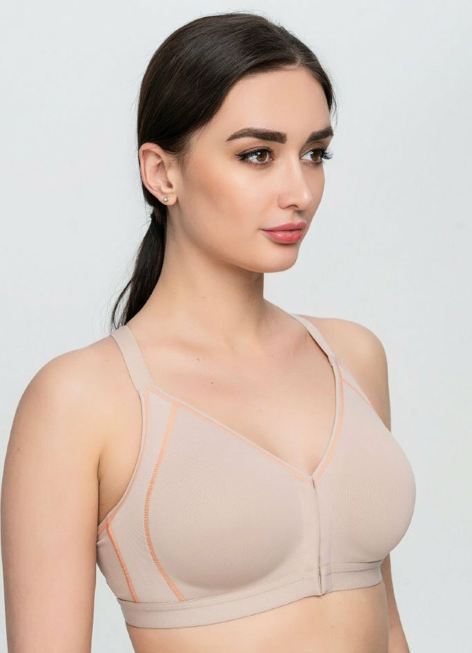 Le soutien-gorge est fait de tissu respirant et est idéal pour les femmes actives. Il n'y a pratiquement pas de coutures sur le modèle, donc les frottements ne se forment pas sur la peau. Le fermoir est situé à l'avant, le soutien-gorge est donc facile à mettre et à enlever.