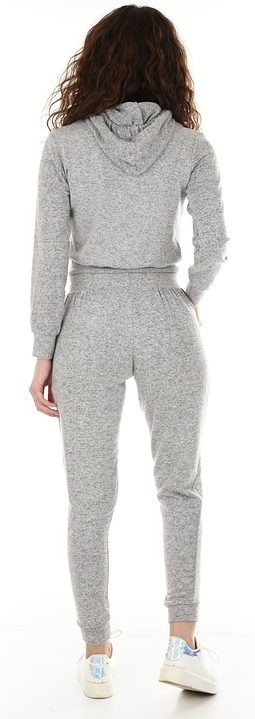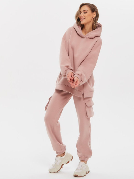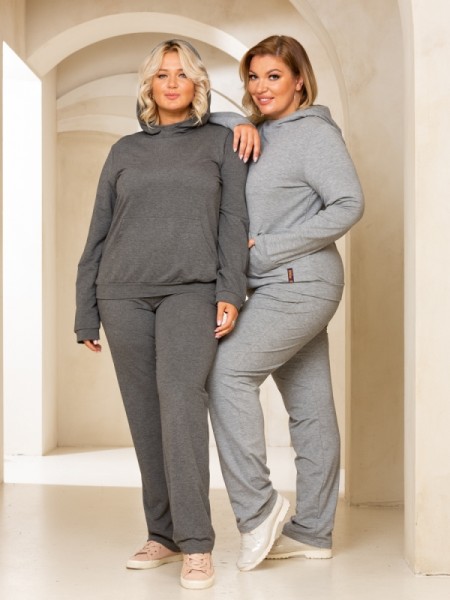 L'ensemble du fabricant russe est composé d'un sweat à capuche et d'un pantalon droit. Tissu - pied de page, composé à 65% de viscose. Le sweat-shirt et le pantalon ont des poches coupées. Le sweat-shirt est encadré d'un élastique en bas, il n'y a pas de revers sur les manches et les jambes.