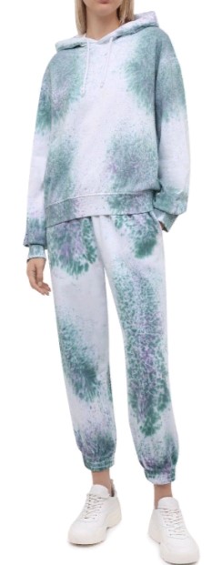 Comme pour la plupart des collections, les composants de cet ensemble peuvent être achetés séparément.La combinaison est très agréable au corps et chaude grâce au dessous texturé de la matière. Le tissu est 100% coton. Attire définitivement le motif du modèle, réalisé dans la technique du tie-dye dans les tons verts et violets.