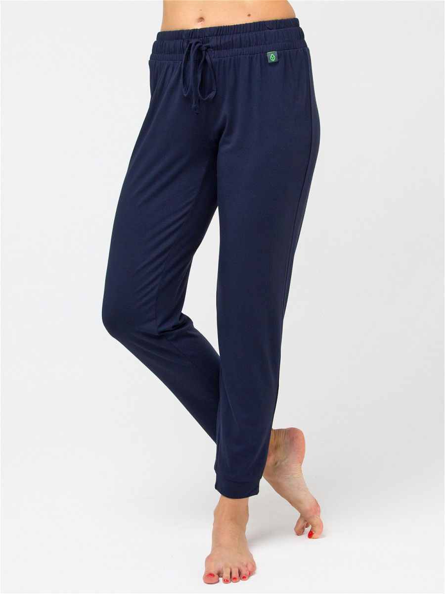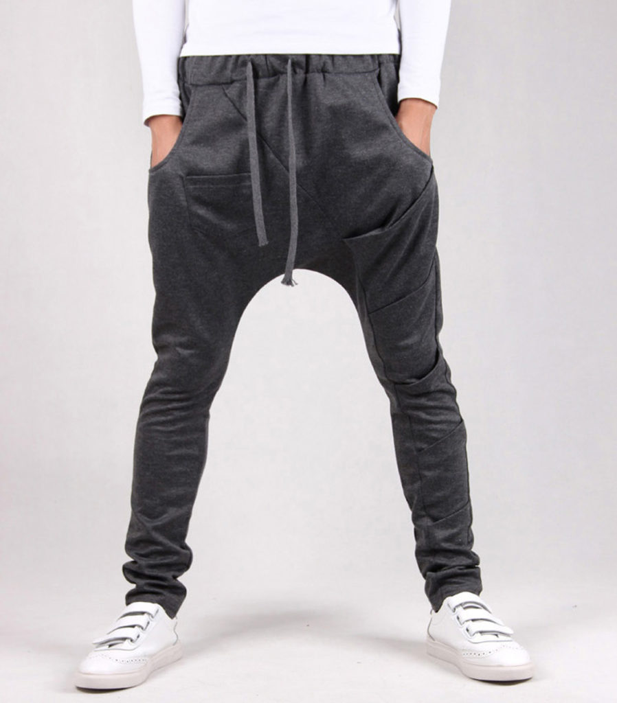 Ce modèle a une coupe ample, légèrement ajustée en bas, en haut et aux chevilles a une bande élastique douce large ou étroite. Ils ont été conçus à l'origine pour le jogging, mais sont maintenant de plus en plus utilisés dans la vie de tous les jours. Habituellement, le tissu est en tricot ou en coton, mais certains modèles féminins sont en soie. La couture intérieure de l'aine sur toute la longueur peut être sous-estimée. Ce style de vêtements de sport est populaire chez les hommes et les femmes.