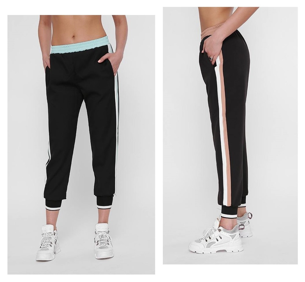 Ils peuvent agrémenter tout type de pantalon : droit, rétréci, large. La longueur peut être juste en dessous du genou, raccourcie ou jusqu'aux chevilles. Auparavant, les rayures étaient utilisées exclusivement dans le style militaire, mais elles sont désormais un élément indispensable des équipements sportifs. L'avantage des pantalons à rayures peut être attribué à l'allongement visuel des jambes.