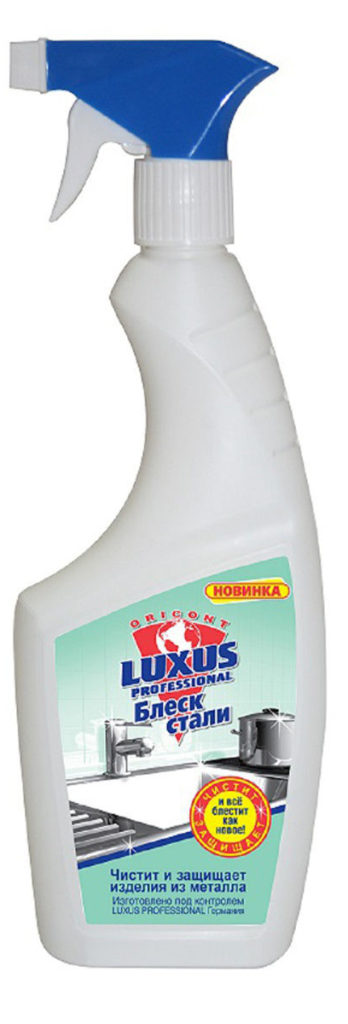 Le remède d'un fabricant russe est fabriqué sous la forme d'une substance liquide qui résiste à tous les types de saleté. Élimine efficacement le calcaire de l'eau et combat l'apparition de la rouille. Convient aux métaux blancs et non ferreux. Un distributeur pratique vous permet de répartir uniformément la substance sur le sujet. Utilisez un chiffon doux pour le nettoyage.