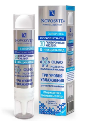 Le sérum transparent se présente sous forme de gel. Le volume du flacon est de 35 ml. Le produit hydrate l'épiderme en profondeur. L'acide hyaluronique dans la composition du médicament aide efficacement à lisser les rides. L'amide d'acide nicotinique est nécessaire pour réparer la peau et protéger les cellules des accumulations de mélanine. Le résultat est de se débarrasser des taches de vieillesse.