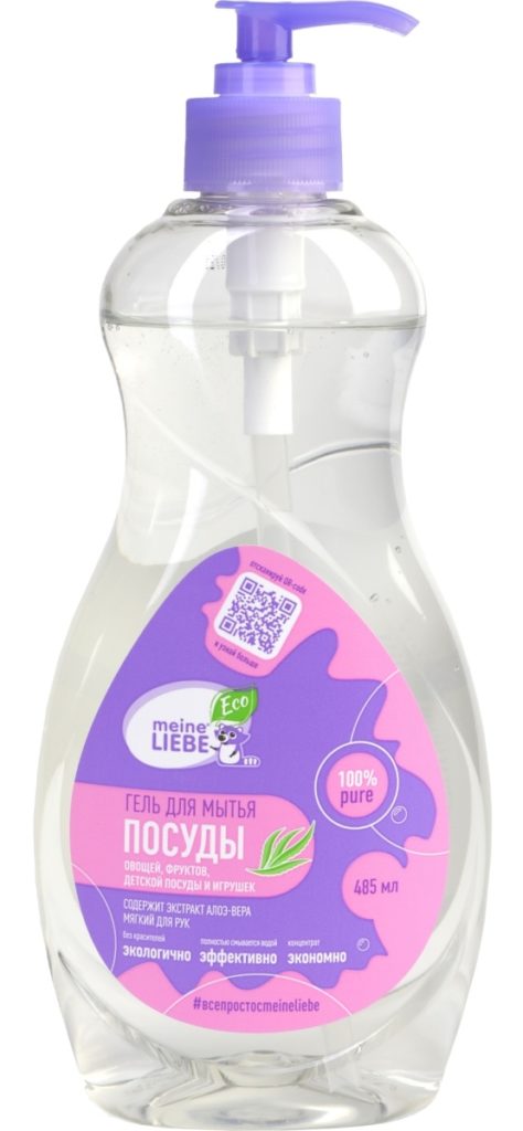 Le gel contient un extrait naturel de jus de concombre, il supportera bien non seulement la nourriture, mais aussi la vaisselle (biberons, tétines, assiettes, tasses). Le léger arôme de menthe disparaît au lavage, la vaisselle devient propre et brillante. Nettoie les produits du film de cire et des produits chimiques même dans l'eau froide. La durée de conservation est de : 6 mois. Ne nécessite pas de conditions de stockage particulières. Prix : 170 roubles.