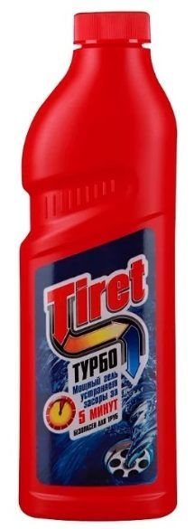 "Tiret" est un gel efficace et populaire qui pénètre dans la structure d'un blocage fort même avec de l'eau stagnante. Il est actif dans les blocages organiques et inorganiques et n'affecte pas non plus la composition des tuyaux en métal et en matière plastique. L'outil a une formule spéciale qui n'endommage pas les parois intérieures des tuyaux d'égout.