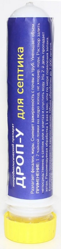 Une telle préparation neutralise / décompose les matières fécales, les graisses et autres substances. Réduit le volume des déchets - moins besoin de pompage mécanique. 1-2 cuillères à café suffiront pour un seau d'eau froide (et sans chlore).La solution de travail doit être versée directement dans la fosse septique ou dans les toilettes, puis rincée. Après le traitement, le 2ème jour, l'odeur désagréable disparaît. La fréquence de traitement recommandée est de 1 fois par mois (ou au fur et à mesure que l'odeur apparaît). Les bactéries peuvent vivre toute l'année sous certaines conditions. Le coût recommandé pour les chaînes de magasins est de 333 roubles.