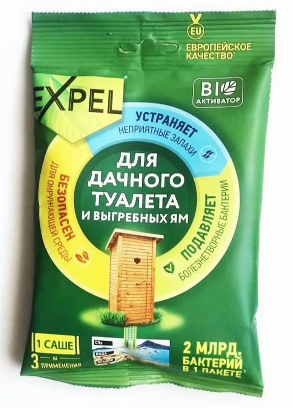 La composition d'enzymes dans ce matériau active le travail de la fosse septique et accélère le traitement des déchets organiques - protéines, graisses et autres. Idéal pour les conditions anaérobies d'une fosse septique, et la composition des composants bioactifs supprime l'odeur gênante, tout en réduisant la quantité de sédiments solides, réduisant ainsi le besoin d'auto-élimination. Il est important de noter que, contrairement aux bioactivateurs liquides à base de bactéries, la formule Expel vous permet d'utiliser en toute sécurité un produit qui sera efficace tout au long de sa durée de conservation. Le coût recommandé pour les chaînes de magasins est de 350 roubles.