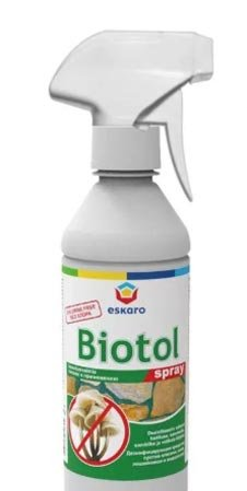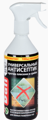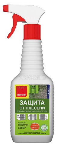 Un spray universel d'un fabricant russe convient au traitement de toutes les surfaces. La popularité du modèle est due à l'absence de métaux lourds, de chlore et de mercure dans sa composition. Produit non parfumé. Avant de traiter les zones gravement touchées, il est recommandé de les nettoyer au préalable avec un grattoir. Vaporiser la préparation à une distance de 30 cm ou appliquer à l'éponge, laisser poser une journée, rincer. Si nécessaire, répétez la procédure. Un paquet suffit pour 4 m².