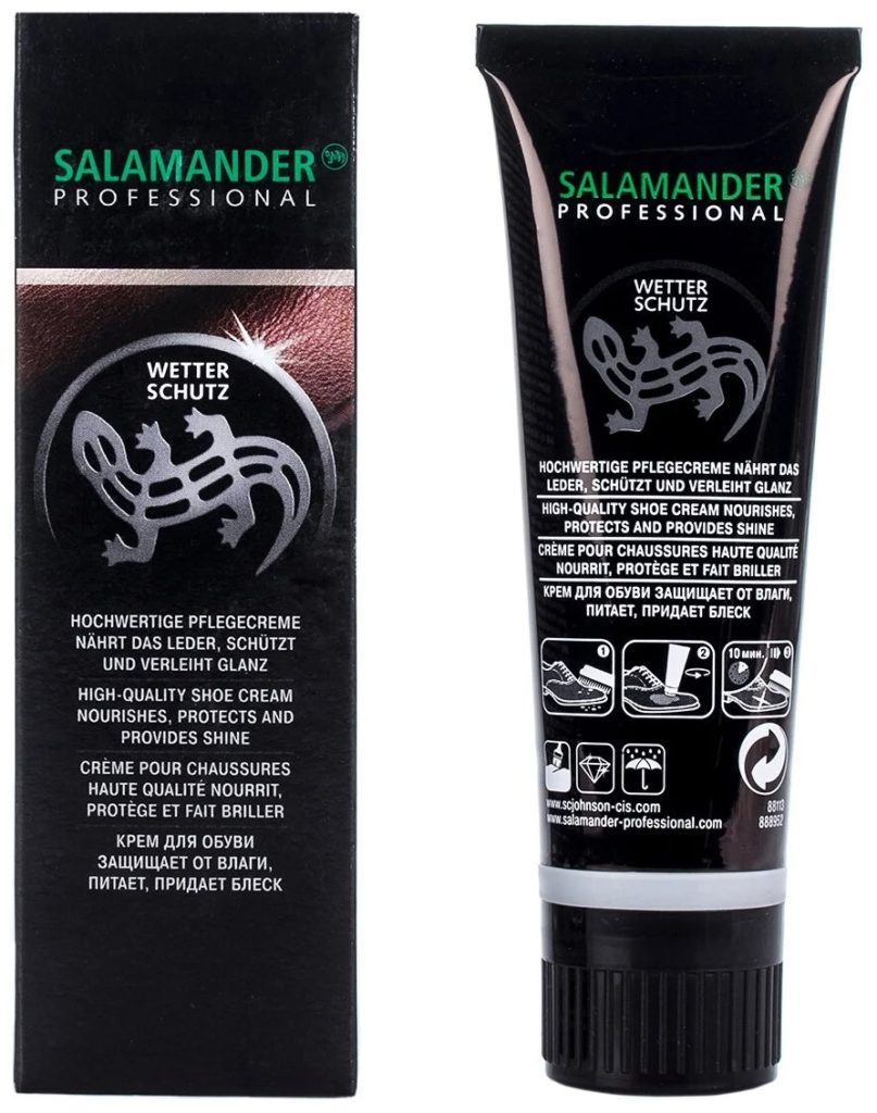 Une crème qui contient 3 bases différentes d'origine naturelle à la fois, capables de protéger les chaussures de la neige comme de la pluie. Cette composition est complètement universelle et grâce à ses composants actifs, elle aidera à donner une nouvelle vie même aux vieilles chaussures. La texture est facile à appliquer, comble tous les dommages extérieurs, adoucit et restaure la peau.