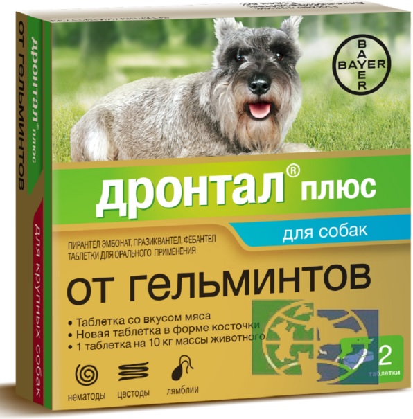 Ce type de comprimé aide à se débarrasser des vers ronds et est assez courant chez les propriétaires de chiens, vous pouvez trouver le médicament dans une pharmacie vétérinaire. Les comprimés ont un goût de viande et l'animal l'aimera, ce qui éliminera le problème de «pousser» le médicament dans le pauvre animal.