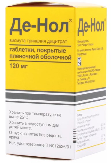 La substance active de ce médicament est le dicitrate de bismuth tripotassique. Il, réagissant avec l'environnement acide de l'estomac, forme des composés spéciaux sous la forme d'un film qui recouvre les zones endommagées des parois de l'estomac. En plus de la fonction protectrice, le dicitrate de bismuth stimule la croissance de l'épiderme aux endroits endommagés. Ainsi, le médicament soulage la douleur dans l'estomac, caractéristique de la gastrite et des ulcères. Quant aux brûlures d'estomac, il y fait également face. Il est important de noter que le médicament est prescrit pour le traitement complexe des maladies gastro-intestinales, et pas seulement pour soulager les symptômes. Schéma d'administration : 1 à 2 comprimés 2 à 4 fois par jour pendant une demi-heure avant les repas. La durée du traitement est de 4 à 8 semaines.