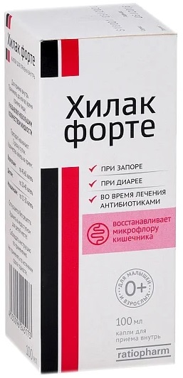 La composition comprend de l'acide lactique et ses sels tampons, capables d'inhiber la microflore pathogène. Étant donné que Hilak Forte ne contient pas de micro-organismes bénéfiques, il est recommandé de l'utiliser en association avec d'autres médicaments.