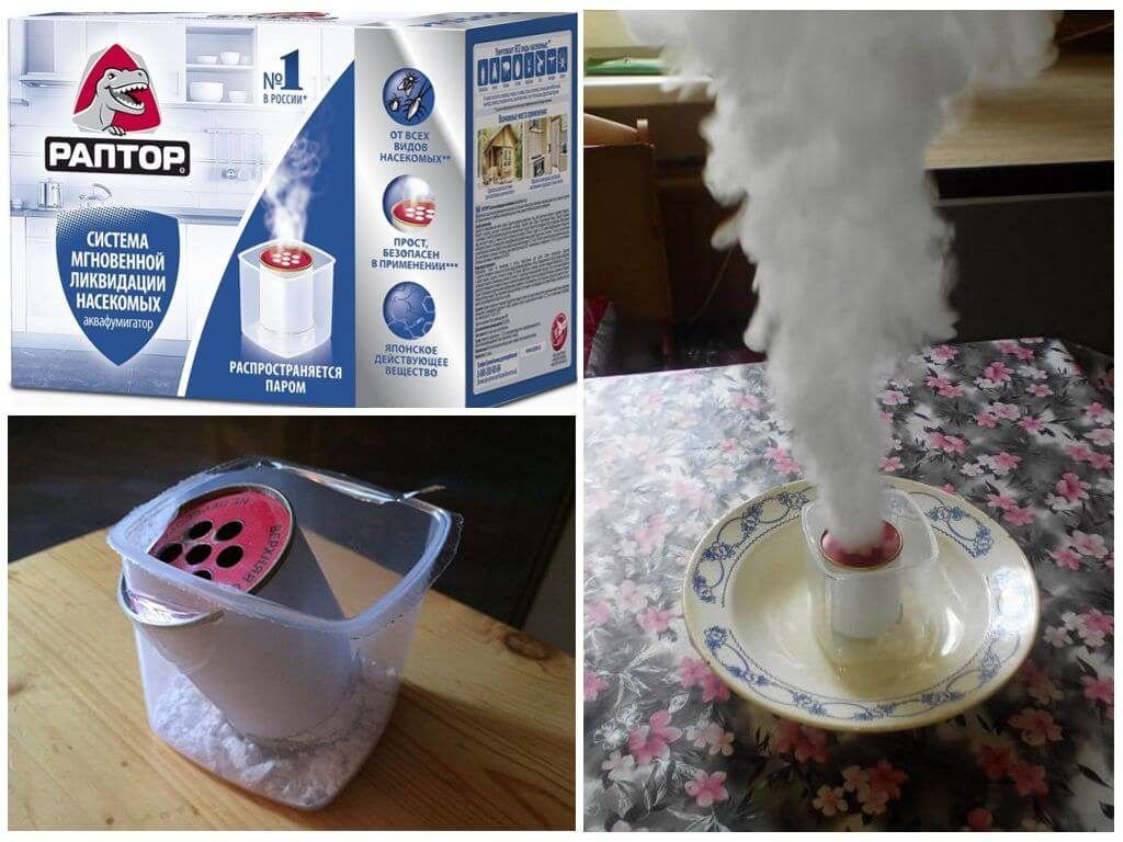 Aérosol, aquafumigator repousse efficacement les nuisibles, les obligeant à quitter leur habitat choisi. Lors de l'utilisation des produits Raptor, des précautions doivent être prises, tenus hors de portée des enfants, à l'écart des aliments.