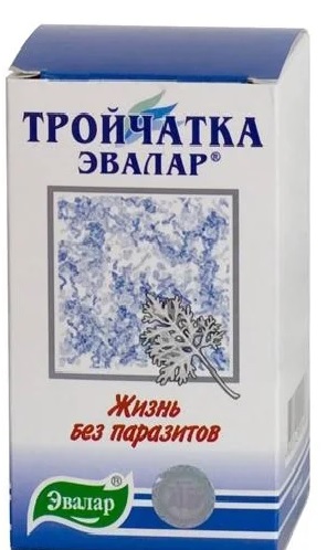 "Troychatka" est disponible en capsules contenant de l'extrait de tanaisie et des fleurs, de l'extrait de tremble et des clous de girofle parfumés. Ce complexe d'herbes crée des conditions défavorables pour les parasites et les expulse ainsi du corps. Ce médicament est considéré comme le plus efficace parmi les compléments alimentaires biologiquement actifs. Et il a pas mal de critiques positives. L'utilisation de 6 gélules par jour chez l'adulte crée un environnement plutôt défavorable aux parasites. Enfants ce médicament est autorisé à partir de 3 ans. Enceinte et allaitante - uniquement après avoir consulté un médecin. La durée du traitement est généralement de 2 semaines selon un schéma spécial décrit dans les instructions. En plus de lutter contre les parasites, ce médicament est utile pour augmenter l'immunité, contre l'acné et les taches de vieillesse. Le prix moyen est de 300 roubles.