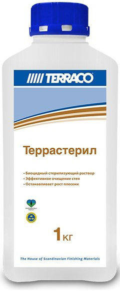 Agent biocide russe très efficace pour le traitement externe et interne des locaux. Fait face avec succès à divers types de moisissures, champignons, mousses, lichens et algues. La composition du médicament comprend des fongicides actifs qui ont un effet désinfectant et empêchent la reformation de la plaque fongique. Dans le même temps, "Terrasterill" ne contient pas de composés chimiques nocifs, de solvants - c'est une solution écologique à base d'eau. Il a une bonne capacité de pénétration et est également capable de renforcer et de niveler la surface, augmentant ainsi les propriétés anti-humidité.L'antiseptique non seulement ne gâche pas l'apparence du matériau, mais uniformise également sa couleur. De plus, la solution peut être teintée dans une teinte similaire à celle du revêtement en cours de traitement. Un autre avantage non négligeable de Terrasterill est son temps de séchage de seulement 18 heures. La solution est applicable pour la désinfection du béton, du plâtre, de la brique, des minéraux et des surfaces peintes.