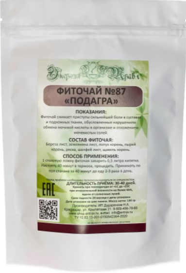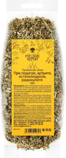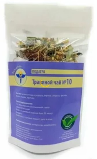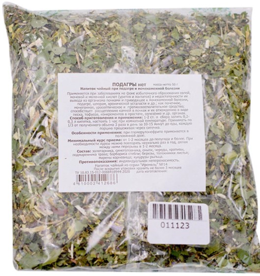 Les remèdes naturels contre la goutte sont utilisés dans le cadre d'une thérapie complexe, aux premiers stades de la maladie. Les herbes sont brassées avec de l'eau chaude pendant 30 à 40 minutes, filtrées, bues 1/2 tasse une demi-heure avant les repas. Poids : 225 grammes. Il est interdit de prendre pendant la grossesse, ainsi que pendant l'allaitement. Coût : 919 roubles.