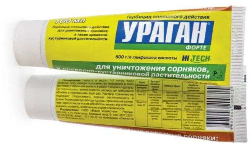 Détruit à la fois les parties aériennes et souterraines de la plupart des mauvaises herbes connues. Complètement la plante meurt en 15 jours. N'affecte pas les plantes cultivées. Fabricant : ceinture verte. Russie. Prix : 287 roubles.