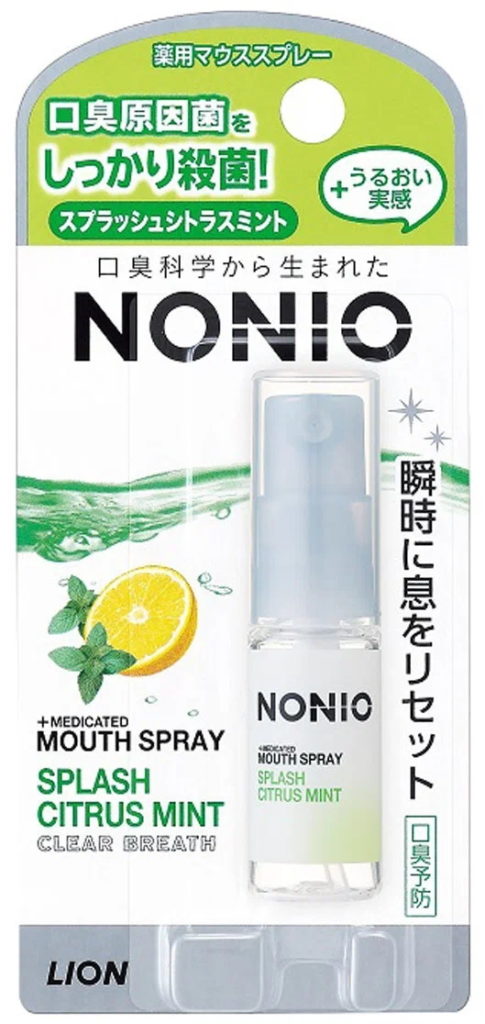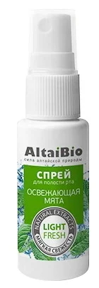 Médicament à longue durée d'action. Supprime un raid et détruit une odeur désagréable. Rafraîchit instantanément. Il a un arôme de menthe et d'agrumes. L'acide polyglutamique réduit la sécheresse. Il a un effet positif après avoir fumé, mangé, lors de réunions de travail. La composition contient de l'alcool.