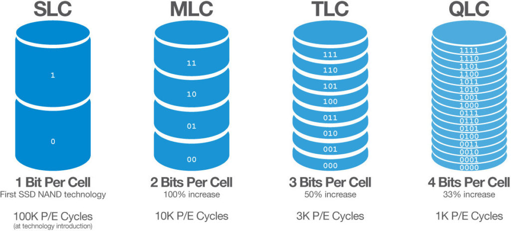 Le type de mémoire dépend du nombre de bits dans 1 cellule et est affiché dans les caractéristiques avec une désignation alphanumérique :