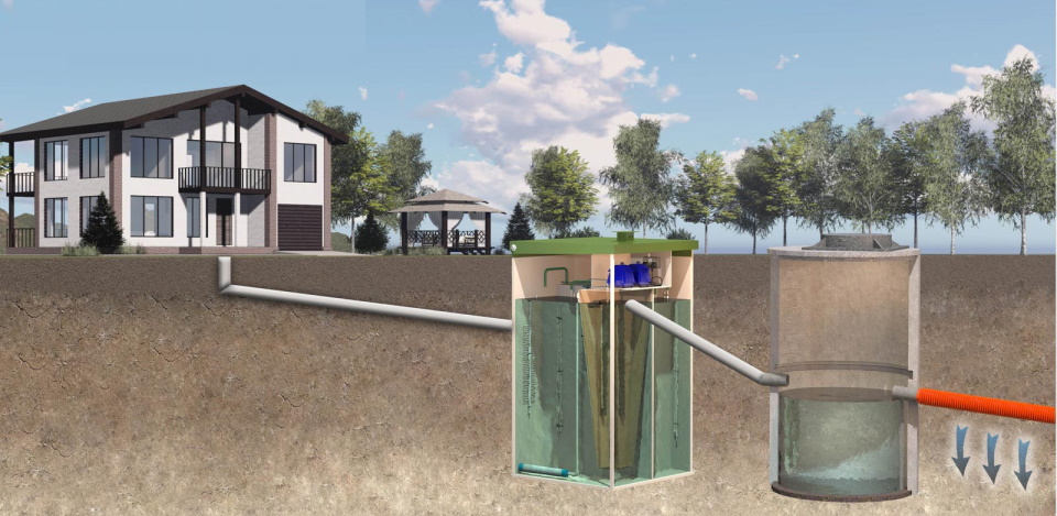 Une station de traitement biologique est un dispositif complexe autonome permettant de recevoir les eaux usées, de les traiter à l'aide de micro-organismes actifs et de rejeter de l'eau purifiée à travers un puits de distribution avec une pompe de drainage dans le sol, un fossé ou un réservoir spécial.