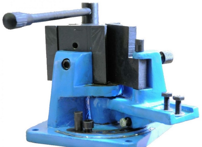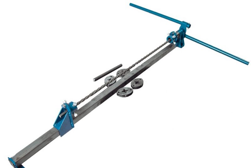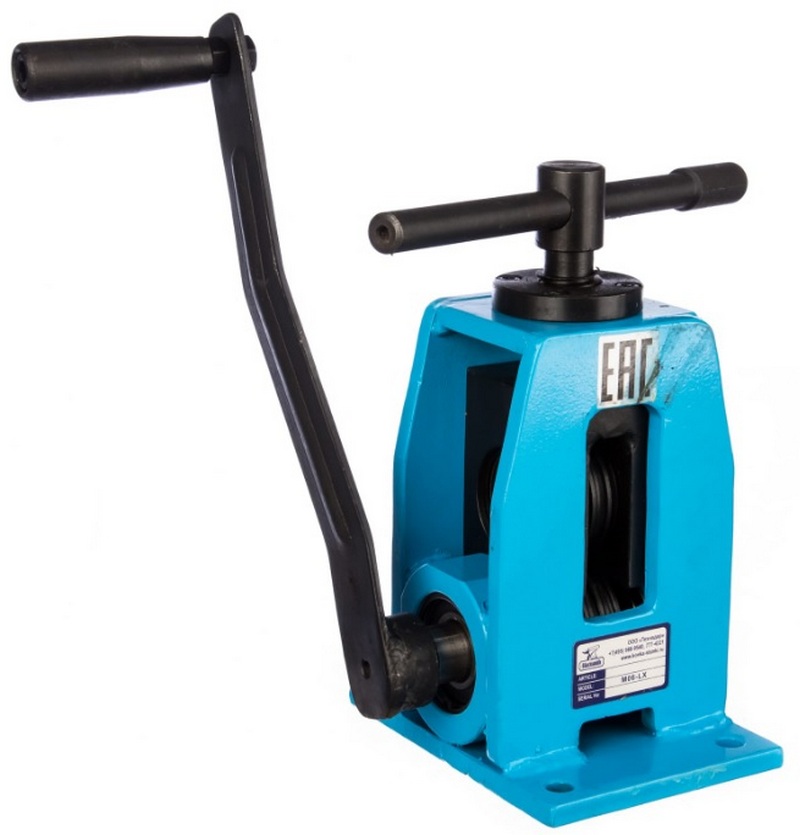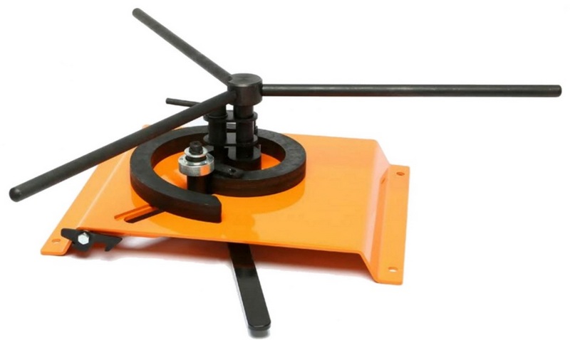 Un dispositif similaire est utilisé pour plier des profilés rectangulaires, ronds et autres solides à faible dureté. Plus le métal est dur, plus les profilés peuvent être pliés. Avant de commencer le travail, la machine doit être solidement fixée sur une base stable. Le coût recommandé pour les chaînes de magasins est de 32 600 roubles.
