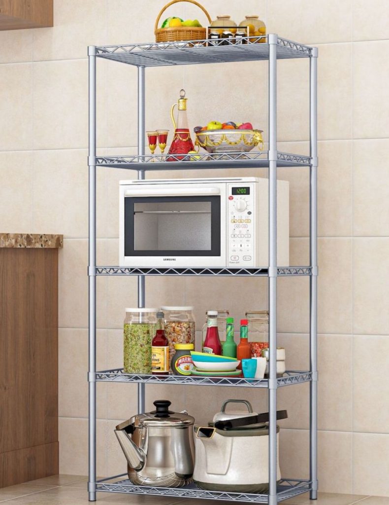 Des racks spéciaux conviennent aux appareils électroménagers. Le prêt à ramasser est difficile, les tailles des fours et des micro-ondes sont très différentes. Il est difficile de ramasser des meubles pour eux, il est impossible de tout laisser sur le comptoir. Par conséquent, les racks sont fabriqués sur commande.