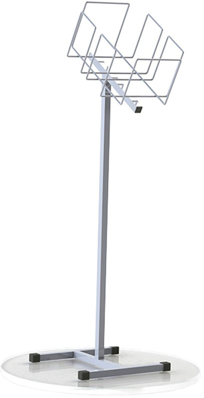 Système de démonstration en métal de type "pupitre" pour le placement vertical de magazines publicitaires, brochures, journaux et autres imprimés. Fabriqué par la société russe Attache, vendu entièrement assemblé. La conception est équipée d'un bac principal et de trois fixations pour les étagères. Le cadre du produit est en tube d'acier, la base de la boîte est en fil d'acier. Le support est enduit de poudre en blanc. La taille du produit est de 1085x340x300 mm, la profondeur de la poche est de 14,5 cm et le coût moyen est de 1 719 roubles.