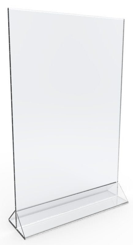 Support de table de type porte-menu avec placement vertical de brochures publicitaires et de menus de restaurant. Conception double face de 297x210 mm, en verre acrylique transparent. A un petit poids. Convient pour une utilisation dans les zones commerciales. Le coût moyen est de - 450 roubles.