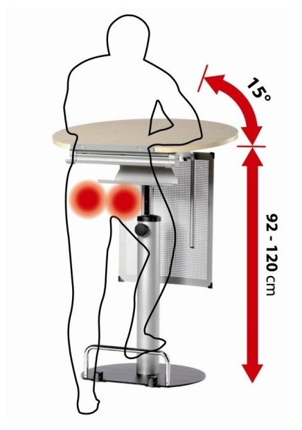 Le développement unique de cette marque deviendra une activité physique passive, contribuant à la destruction des dépôts en excès. Mais le produit principal sera une véritable aubaine pour un mal de dos. La conception a un système de contrôle simple à l'aide d'un élément caché supplémentaire dans la crémaillère du ressort à gaz. Ce qui permet de changer le plan incliné de 0° à 15°, le plus adapté pour travailler avec un ordinateur portable. Et en soi, la zone de la table vous permet de laisser tous les éléments nécessaires en accès rapide. Ce modèle sera une excellente option pour les conférenciers, conférenciers ou négociateurs.
