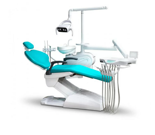 Installation fixe avec une chaise électromécanique acceptant jusqu'à neuf positions, équipée de deux accoudoirs, d'une têtière articulée (adulte et enfant inclus). Le rembourrage des coutures adoucit quelque peu la rigidité du plastique. Vous pouvez choisir entre cuir, similicuir en six couleurs. Le module médical est équipé de quatre instruments, d'un négatoscope pour visualiser les radiographies et d'un plateau métallique. L'hydrobloc avec crachoir rotatif en céramique est alimenté par une alimentation en eau autonome, mais il n'y a pas de système de désinfection des tuyaux. Le luminaire LED pivotant n'a pas de modes de gradation. Type de fourniture d'outils au choix.