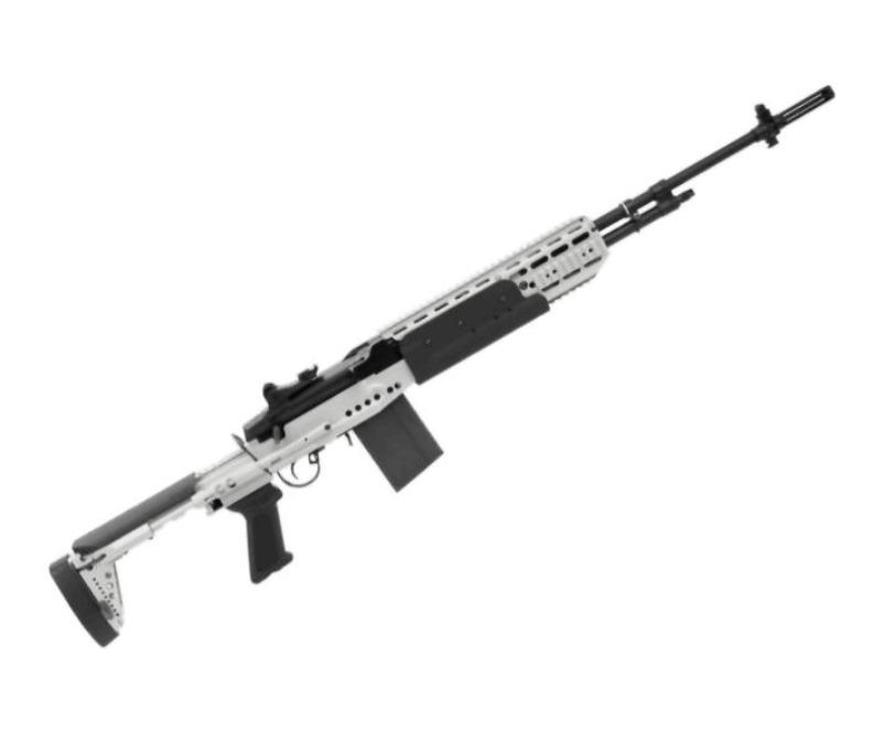 L'élégant modèle électropneumatique de fabrication taïwanaise est une copie du fusil d'assaut M14 utilisé aux États-Unis. Fabriqué en plastique ABS et alliage d'aluminium. Alimenté par batterie Li-FePO, Li-Po et Ni-MH, connecteur Mini-tamiya. Energy 1.7 J. Le chargeur bunker est conçu pour 470 balles d'un diamètre de 6 mm. Vitesse initiale 130 m/s.