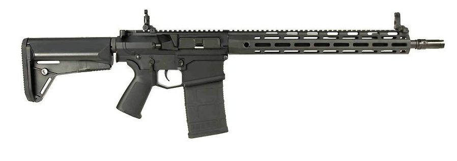 Un modèle électropneumatique basé sur le fusil SR-25. Le corps est en plastique et en métal. Equipé d'un chargeur bunker pour 300 billes calibre 6 mm. Vitesse initiale - 125 m / s. Une caractéristique du modèle est le garde-main RIS. Comprend un chargeur, un chargeur, des instructions et une batterie.