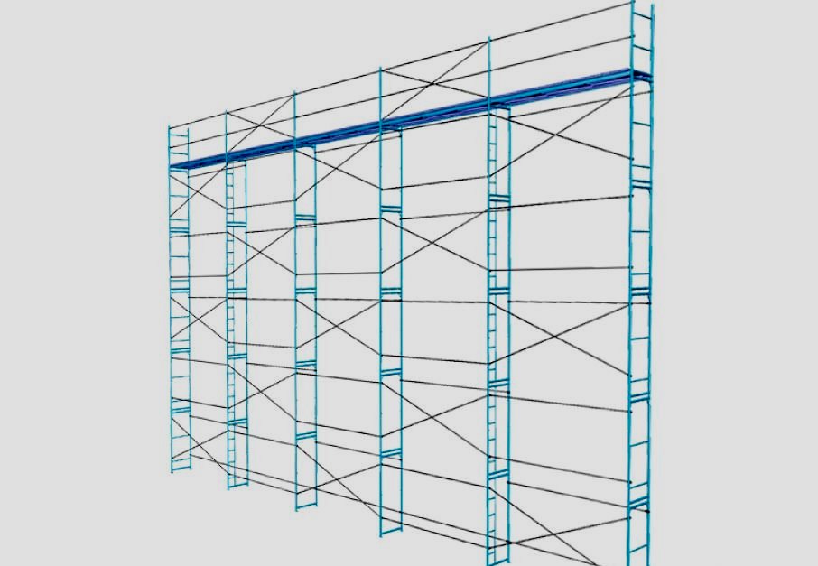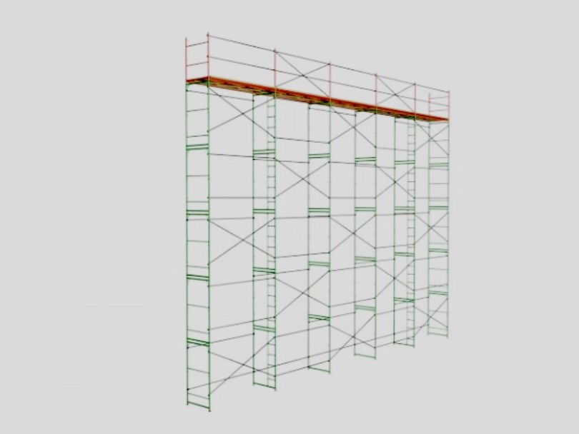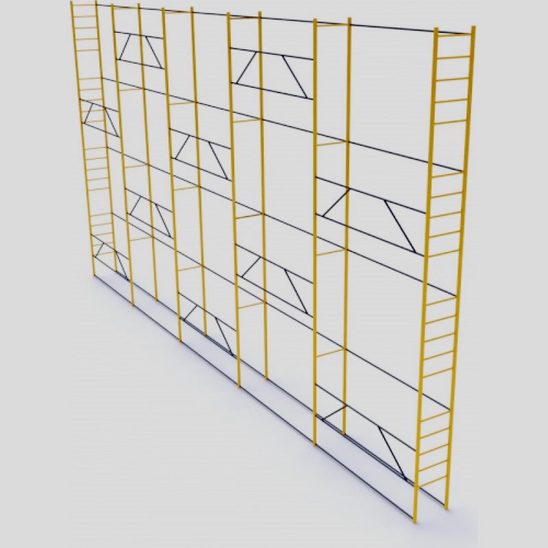 Structure métallique en tubes d'un diamètre de 32 mm. Paramètres - 6 * 27 M. Un métal à haute résistance est utilisé dans la fabrication. Le propre poids est faible. Facilement installé sur place. Il est acheté pour la construction de structures ou pour des travaux de réparation sur un objet dont la hauteur ne dépasse pas 20 mètres.