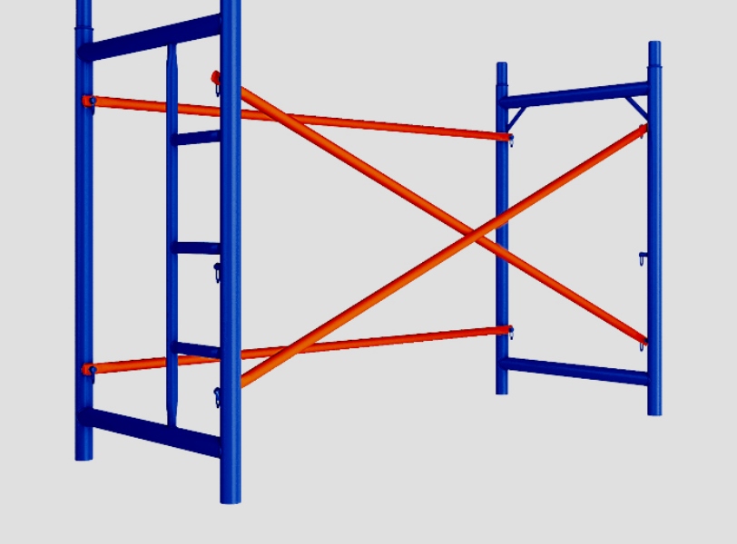 Composé de poutres horizontales et diagonales. Lors de l'assemblage, la méthode sans fil est utilisée. Pour éviter le pliage, les appareils sont fixés avec des serrures (attaches de drapeau). Il n'y a pas de fixations sérieuses, il n'est donc pas nécessaire d'avoir des outils ou des équipements spéciaux avec vous pour monter le produit. Le montage et le démontage sont rapides. Les efforts de trois à quatre ouvriers suffisent. Le principal inconvénient est considéré comme la limitation de la hauteur maximale - jusqu'à 6000 cm.