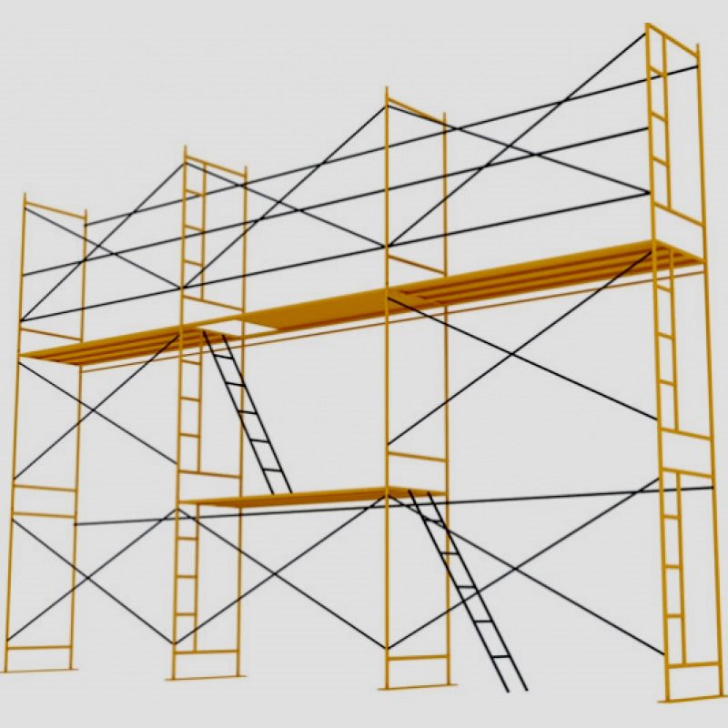 Un échafaudage fiable et durable est vendu sans plancher. Ils sont assemblés à partir de tuyaux métalliques d'un diamètre de 42 mm. Ils vous permettent de peindre rapidement les murs et les plafonds, d'installer des systèmes de façade, de faire de la maçonnerie. Ils pèsent un peu. Les cadres sont joints tuyau à tuyau. Éléments de connexion - serrures à drapeau. Peu d'accessoires. Aucun outil ou équipement n'est requis pour l'installation.